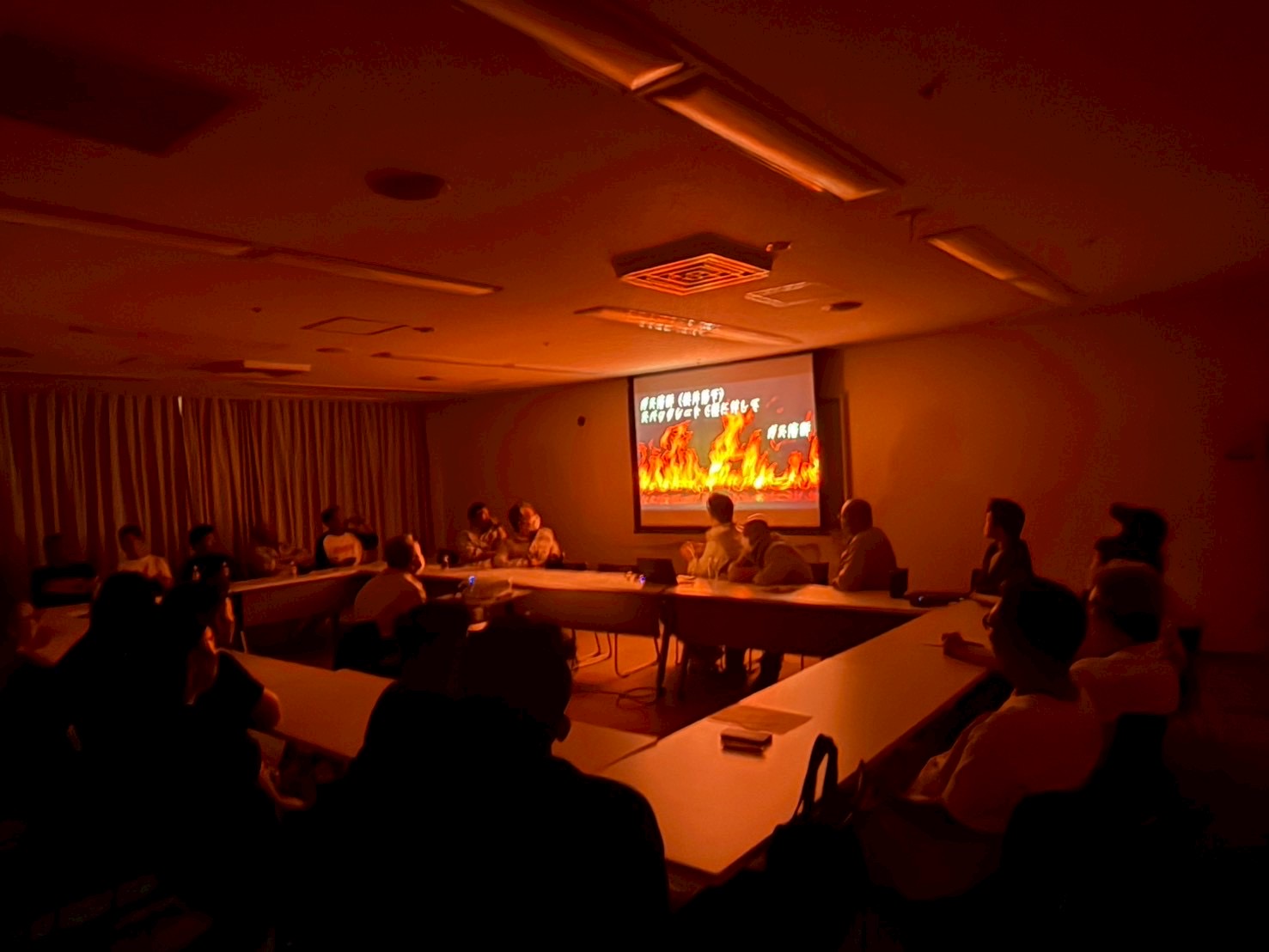 火災を起こさないために、火気使用時の可燃実験ビデオを見て勉強会を行いました。