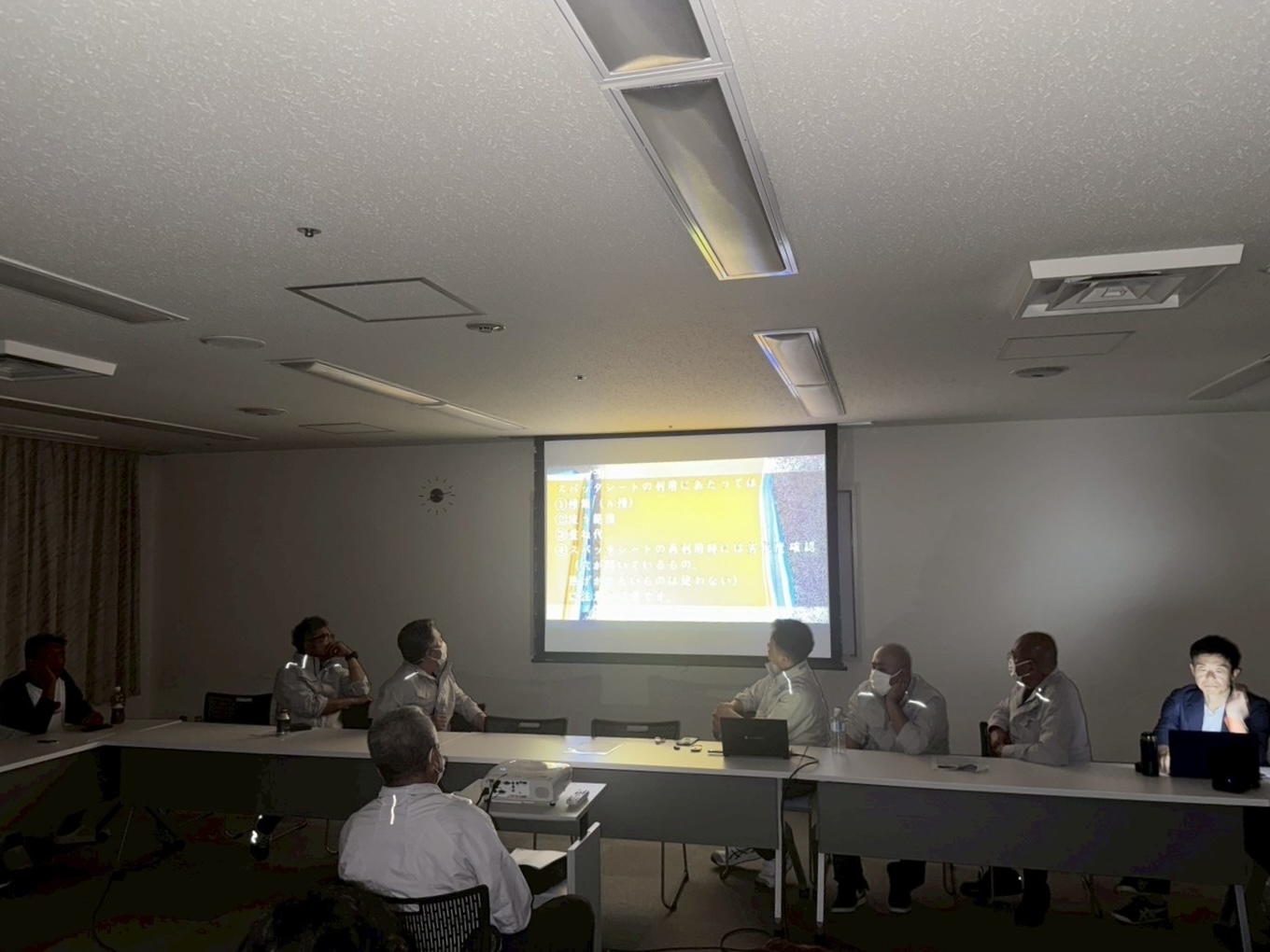 本日は、火気使用の際、可燃物の除却の徹底、ウレタン・スタイロについて周知致しました。